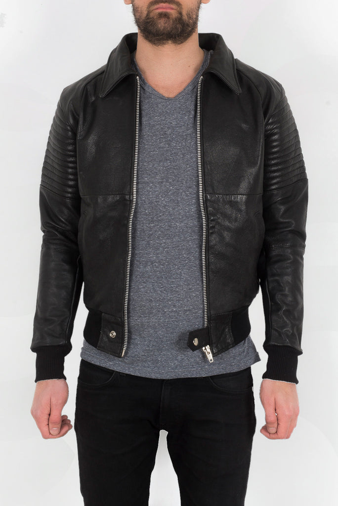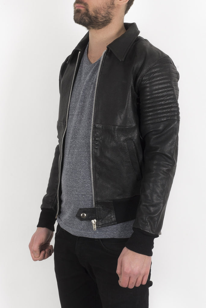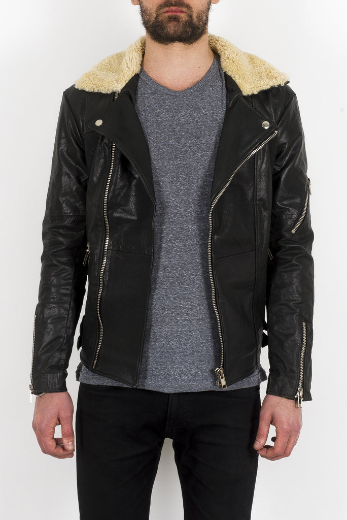 Searching for an edgy leather? The AllSaints Axel Leather Biker Jacket is your layering essential for the new season. Crafted using a unique mix of supple nappa and a knitted jersey at the hem, sleeves and sides, our style is a stand-out investment piece. Looks great with skinny jeans and boots.